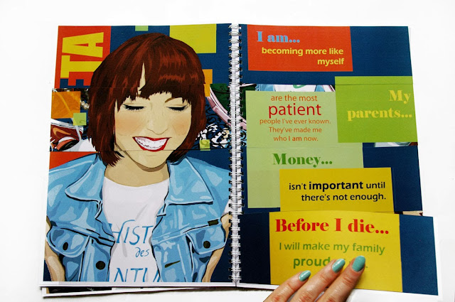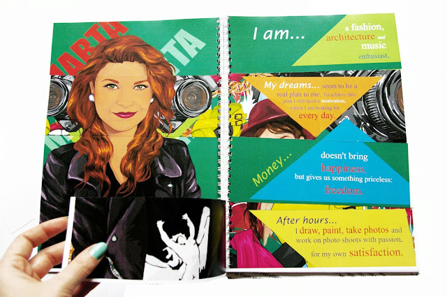 Dodatkowo projekt ten był częścią mojej zeszłorocznej pracy dyplomowej. Początkowo ograniczał się on do wydrukowanego egzemplarza książki, zawierającego serię ilustrowanych wywiadów. Do każdego z nich zostały dołączone papierowe paski, dzięki którym czytelnik może 'bawić się' w odkrywanie kolejnych faktów o danej osobie, jeden po drugim. (Patrz: zdjęcia pod postem)